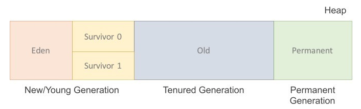 힙에서 영역은 크게 New/Young Generation, Tenured Generation 그리고 Permanent Generation 세 공간으로 구분이 됩니다.