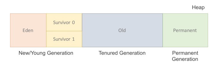 Heap 영역은 Young Generation, Old Generation, PermGen 또는 Metaspace 영역으로 나뉘어진다.