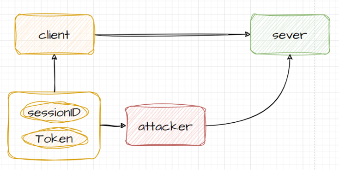해커가 유저의 Session ID 또는 Token을 습득 했을 때를 가정토록 하겠습니다. 아래 그림과 같이 해커는 유저의 정보를 인증할 수 있는 키들을 가지고 있으니 쉽게 서버에 접근이 가능할 것입니다.
