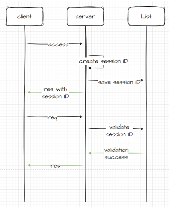 Session 기반 인증이라고 하면서 서버에서는 user에 따른 Session ID를 생성 하고 해당 Session ID를 서버 리스트에 저장을 시켜 요청이 올 때 마다 유저를 인증하는 방식입니다.