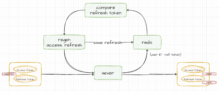 - 일치하면 access token과 refresh token 재생성.