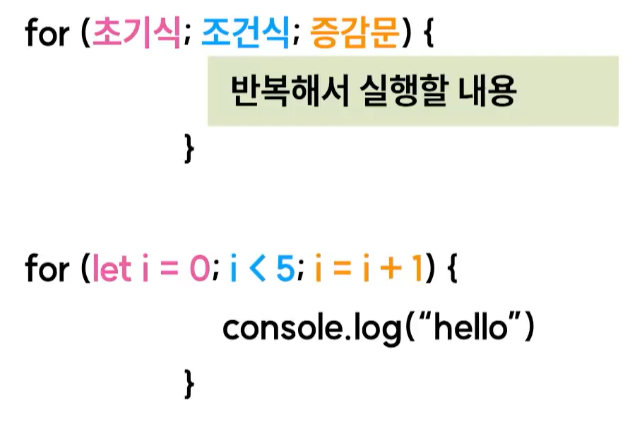 - 증감식 : 변수의 증가 또는 감소 식 i++ / i--