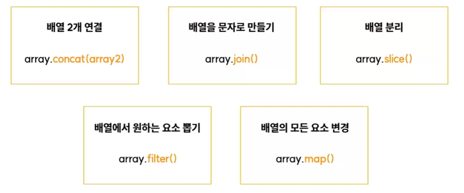 - array.slice(startIndexNum, endIndexNum) : 원하는 인덱스 넘버 사이의 있는 값을 따로 분리 가능함.