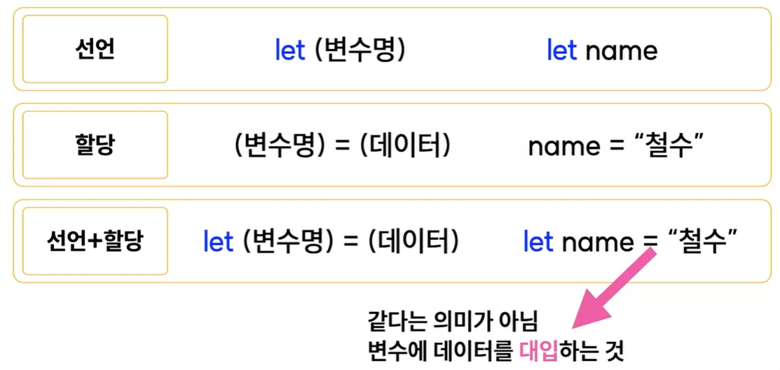 - 변수와 상수를 사용하기 위해서는 변수 또는 상수를 선언해야함.