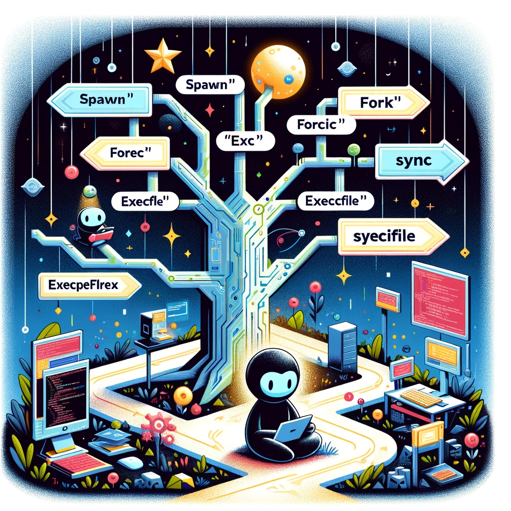 Node.js에서 child_process 모듈은 자식 프로세스를 생성하고 관리하는 데 사용됩니다. 이 모듈은 다양한 기능을 제공하여 다른 요구 사항을 충족시킵니다. 주요 함수로는 `spawn()`, `fork()`, `exec()`, `execFile()` 및 이들의 동기 버전이 있습니다. 각각에 대한 간략한 개요는 다음과 같습니다.