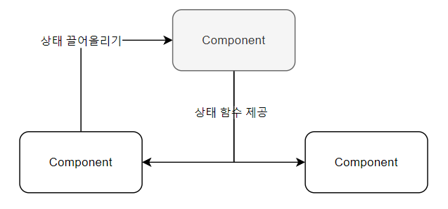 `state`를 사용하다보면 하나의 자식 컴포넌트에서 사용되는 상태를 여러 컴포넌트에서 사용하여야 하는 경우가 생기게 됩니다. 이럴 때, `state` 끌어올리기를 수행하여 상위 컴포넌트에서 상태를 관리를 할 수 있도록 하고, 기존 자식 컴포넌트들은 유상태 컴포넌트가 될 수 있도록 하여야 합니다.